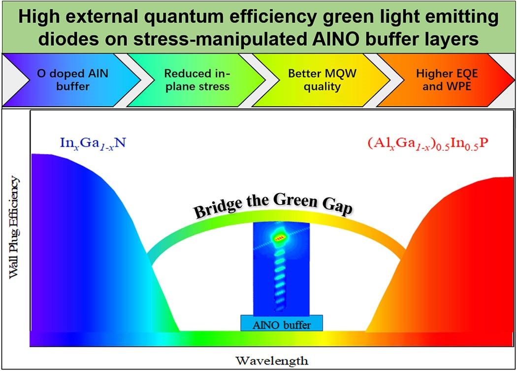 Recently, Professor Kang Junyong of Xiamen University and Dr. Chen Kaixuan of Ganzhao Optoelectronics have jointly tackled key problems and have made significant progress in improving the efficiency of green LEDs. The research results were published in IEEE PHOTONICS JOURNAL 14(4) (2022) 8234405 under the title of "High External Quantum Efficiency Green Light Emitting Diodes on Stress-Manipulated AlNO Buffer Layers".