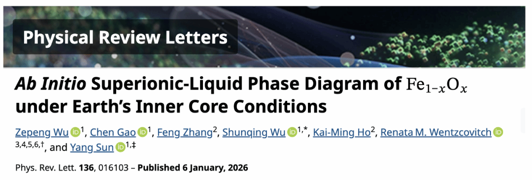 在地表以下约 6000 公里处,存在着地球最致密的部分—内核。内核主要由铁组成,还含有一定量的氧等轻质元素。内核所处的极端高温高压环境孕育着许多新奇物态。比如,在日常条件下金属铁与氧接触会形成我们熟知的固态铁锈;然而在内核高达约 360 万个大气压、温度可达 6000 K 的条件下,氧却会在铁的晶格中如液体般运动,...
