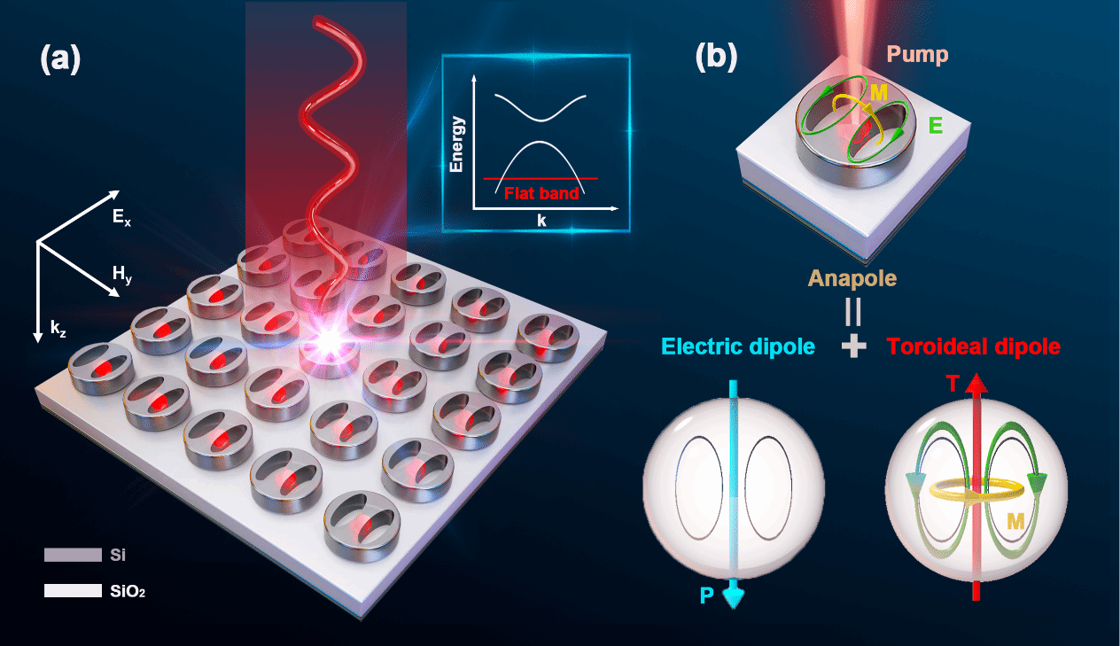 近日,厦门大学物理科学与技术学院杨志林教授团队、陈张海教授团队联合电子科学与技术学院易骏副教授团队、化学化工学院李剑锋教授团队,在光子平带(Photonic Flat Band)研究领域取得重要突破。研究团队创新性地利用新型光学局域模Anapole Mode(无极模),成功实现了光子平带的远场激发与动态调控,解决了光子平带难...
