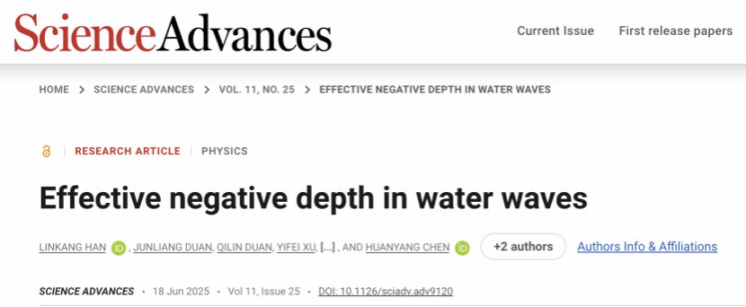 近日,厦门大学陈焕阳团队在水波超构材料领域取得重要突破。研究团队利用周期领结阵列在水波中成功等效出“负水深”,为水波隔波提供了新的方法和思路。相关成果以“Effective negative depth in water waves”为题发表于期刊Science Advances。海浪中虽蕴含可观的能量资源,但也对海上建筑和人类海上活动构成严重危害...