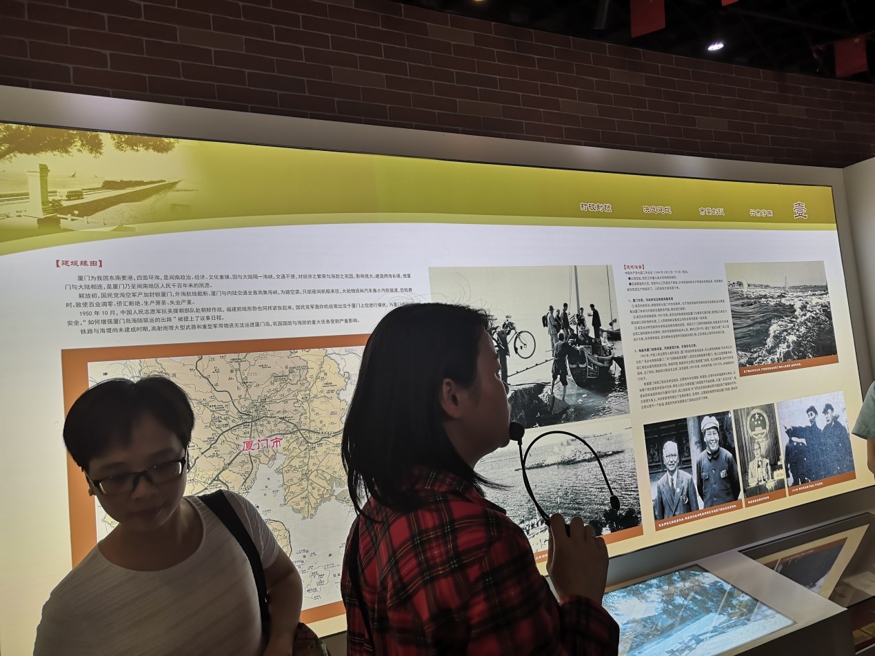 下午三点十分乘车前往到达海堤纪念公园,纪念馆的解说员早早等在那里。在解说员的带领下,对厦门海堤的建造历史及意义、有代表性的人物和历史事件以及建造海堤时中国人民所展现出的精神面貌有了初步的了解。