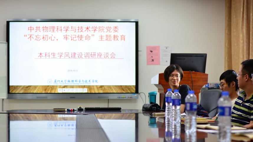 10月11日下午,根据“不忘初心、牢记使命”主题教育的工作要求和安排,学院召开本科生学风建设调研座谈会,针对网络时代学院学风建设新出现的问题及解决措施开展讨论并提出建设意见。厦门大学第二巡回指导组副组长、学生处副处长陈泗林莅临指导本次会议,物理科学与技术学院党委副书记郑诚明,团委书记邱荣锋,团委副书记陈洪,以及我院大一至大四各年级共17位本科生代表共同出席会议。