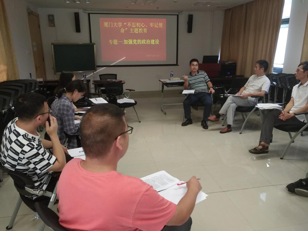 会上,统计物理及其交叉学科党支部书记苏山河对传达了学院关于“不忘初心、牢记使命”主题教育的要求,并对支部“不忘初心、牢记使命”主题教育具体工作做出了安排。支部全体党员在支部书记苏山河的领导下,集中学习了关于‘加强党的执政建设专题’的研讨资料。通过认真研读,朗诵,全体,支部师生学习了中共中央关于加强党的政治建设的意见以及厦门大学关于贯彻落实《中共中央关于加强党的政治建设的意见》的实施方案。学习强调党的政治建设是党的根本性建设,要深化对党的政治建设的认识,要增强推进党的政治建设的自觉性和坚定性,坚定不移推动全面从严治党向纵深发展。