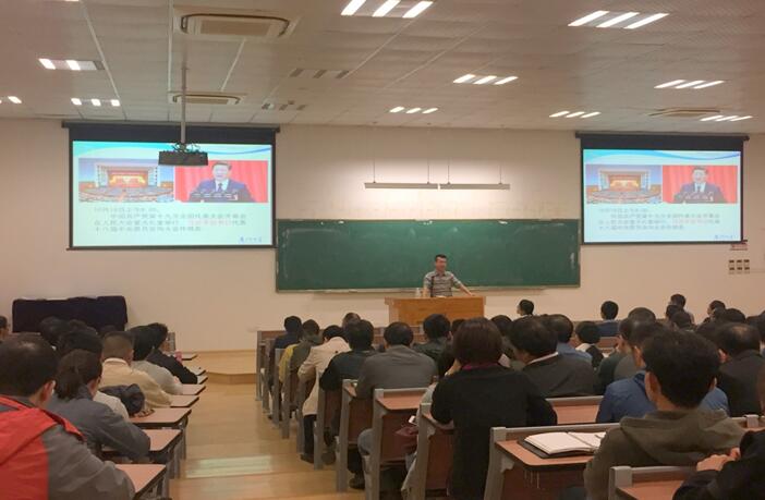 11月20日下午,物理科学与技术学院在物理大楼117会议室举行了主题为“学习贯彻党的十九大精神”的专题思想政治理论学习,学习会主要由物理科学与技术学院党委书记林奋强作专题党课,解读党的十九大精神,物理科学与技术学院和萨本栋微米纳米科学技术研究院全体教职工、学生党支部支委共200余人参与了此次学习。