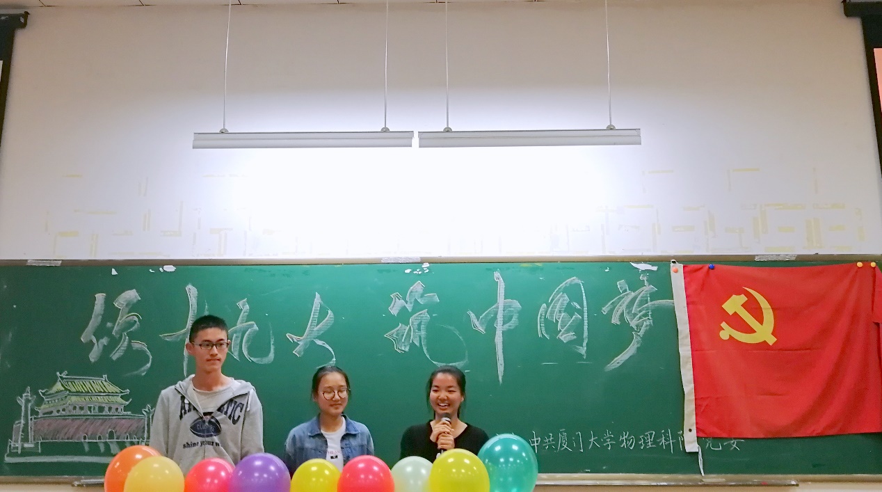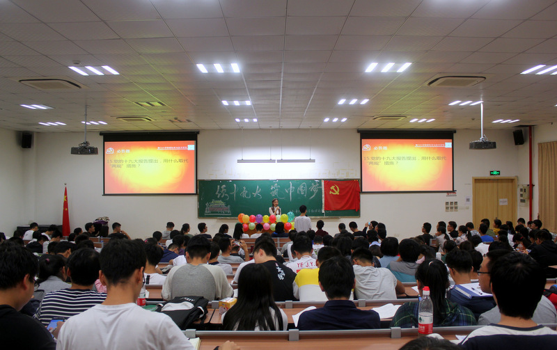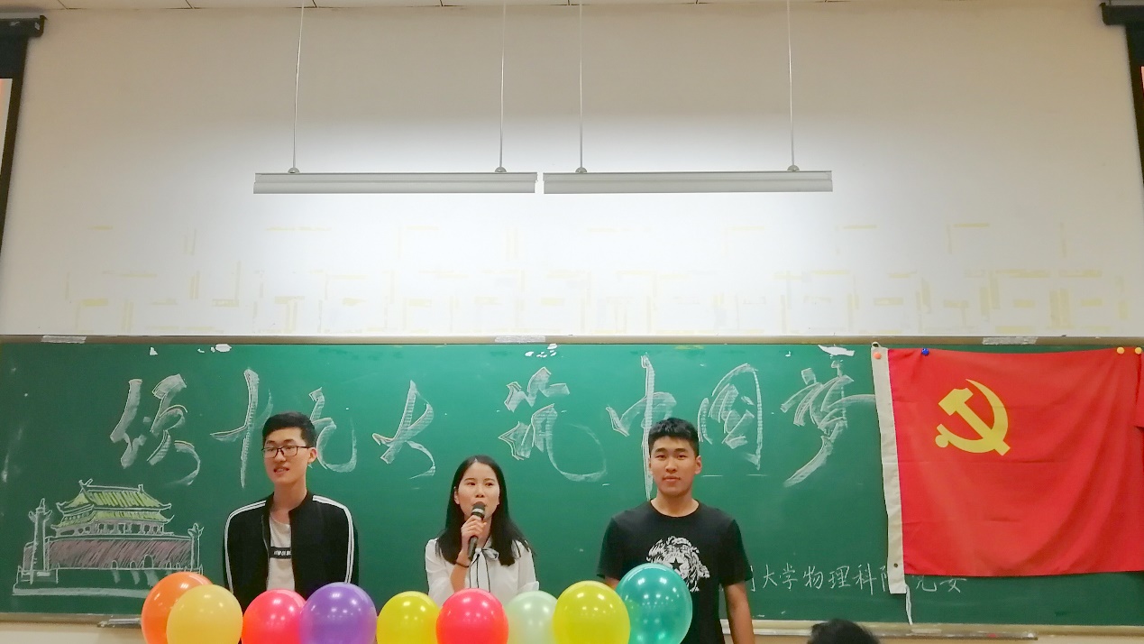 11月6日下午物理科学与技术学院在物机大楼117室举办党的十九大系列学习活动之“颂党的十九大,筑中国梦”的主题活动,参加本次会议的嘉宾有物理科学与技术学院党委副书记郑诚明老师、团委副书记陈洪老师、兼职辅导员郑美颖以及2016级、2017级全体本科生。