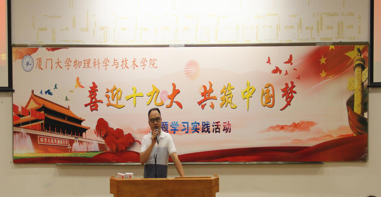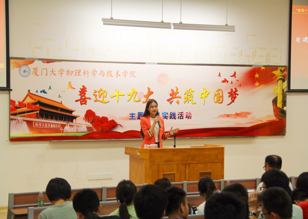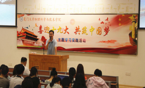 10月16日晚七点,物理科学与技术学院本科生“喜迎十九大,共筑中国梦”第二场主题学习实践活动在物理大楼117报告厅举行。我院党委副书记郑诚明老师、团委副书记陈洪老师、兼职辅导员郑美颖以及2016级全体本科生参加了此次学习活动。