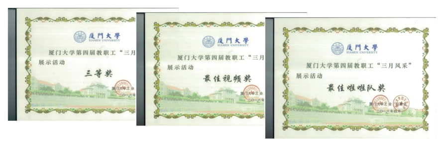 积极引导鼓励教职工参加学校各项文体活动,并荣获第四届教职工“三月风采”展示活动三等奖、最佳视频奖及最佳拉拉队奖;高度重视省级“巾帼文明岗”的创建工作,以塑立“自尊、自信、自立、自强”的现代知识女性形象为宗旨,坚持严格要求,高效工作;主动作为,发挥品牌效应,为我院师生提供了优质的后勤保障和温馨服务,并获得了广泛的认可,荣获“福建省巾帼文明岗”荣誉称号。