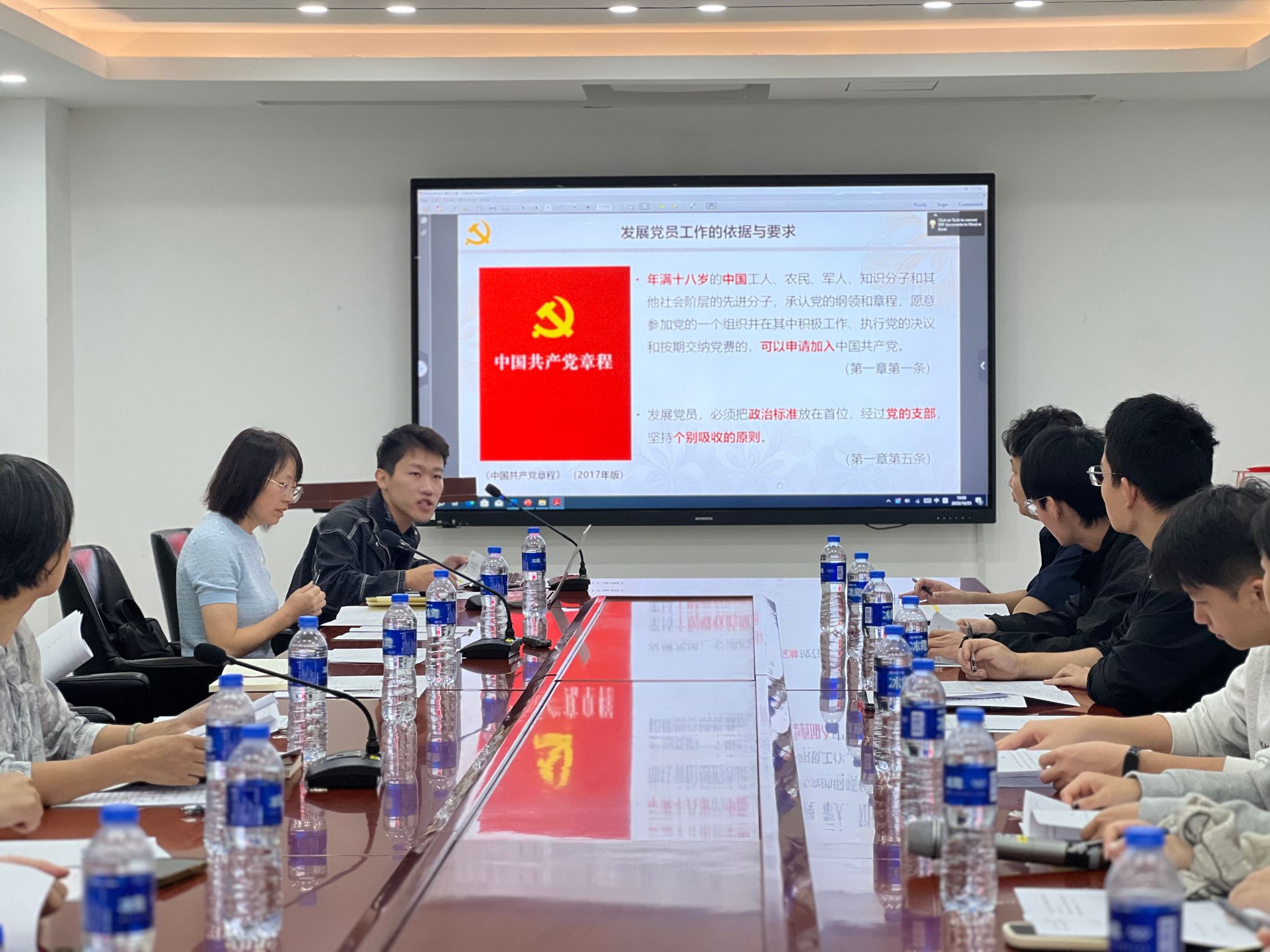 律明龙详细介绍入党积极分子教育考察情况,指出支部从接收入党申请书开始就要注意各个关键环节,及材料和会议记录等材料的完整、规范,做好学生党员与学院党建工作之间的桥梁。