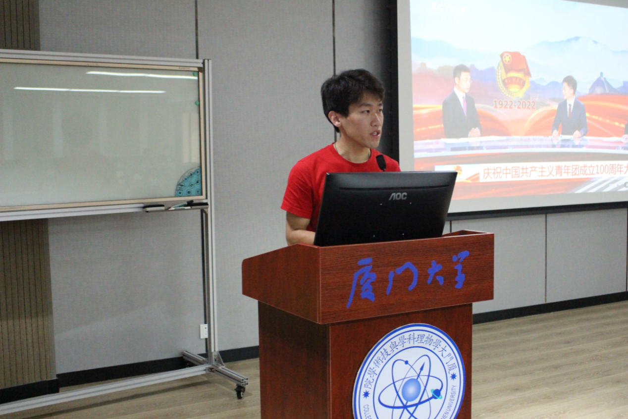 辅导员律明龙最后总结说到:“我们是幸运的一代人,在最美的年纪见证着诸多伟大的时刻。生逢其时,重任在肩!各位团员骨干要牢记共青团员的初心和使命,磨砺品格,提高本领,发挥团员干部的先锋模范作用,在党和国家需要的时候,站的出来,顶的上去,以昂扬姿态展现厦大物科学子自信、阳光、向上的风采。”