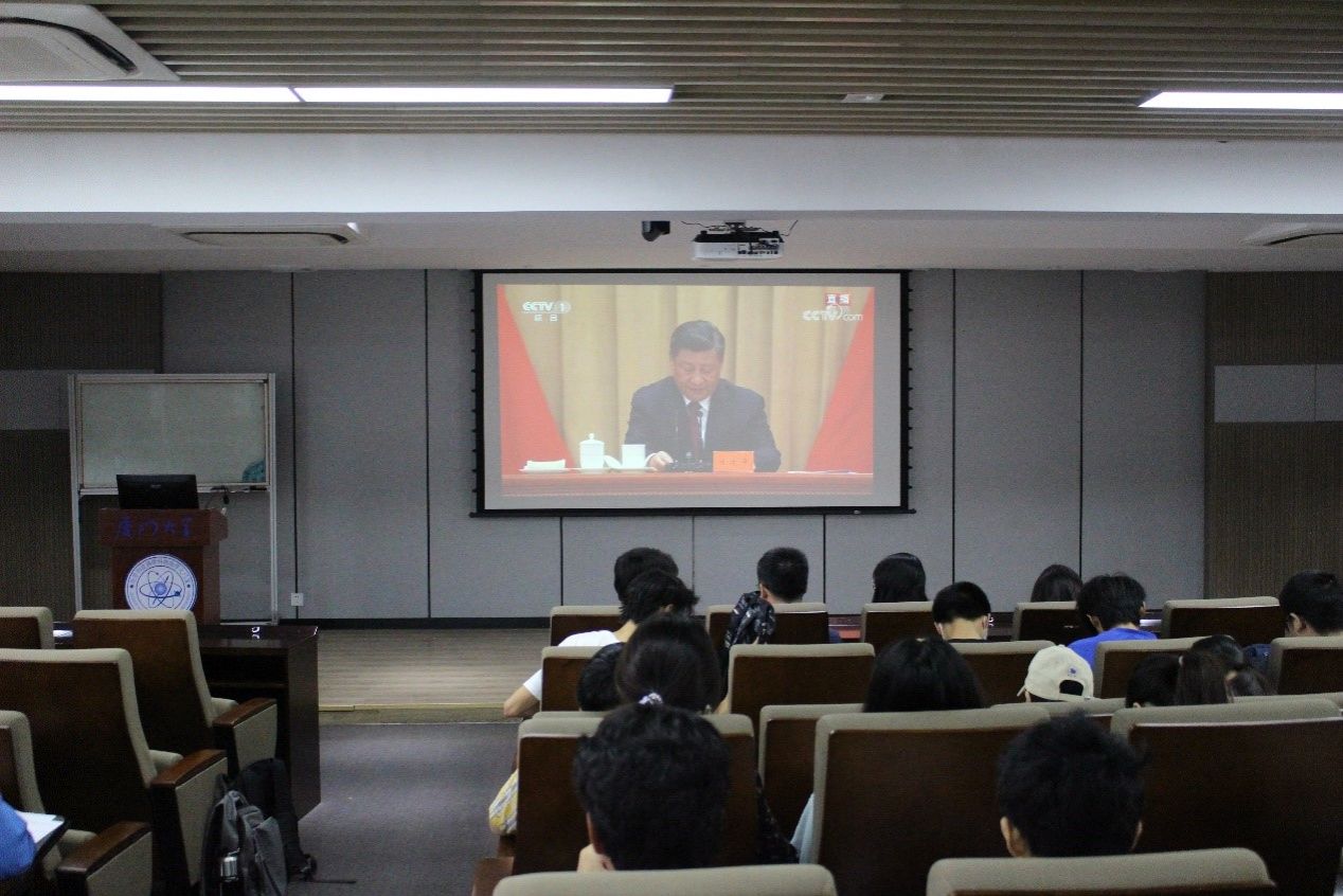 5月10日上午10时,庆祝中国共产主义青年团成立100周年大会在北京人民大会堂隆重举行,习近平总书记出席大会并发表重要讲话。物理科学与技术学院团委第一时间组织师生团员线下集中观看大会直播盛况,深刻学习领会习近平总书记重要讲话精神。