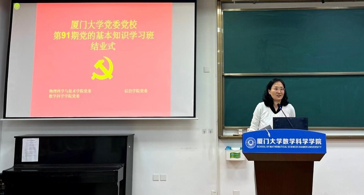 4月6日下午,党委党校第91期(学生9班)党的基本知识学习班在海韵园实验楼106教室举行结业仪式。本期学习班由物理科学与技术学院、数学科学学院、信息学院联合举办,物理科学与技术学院组织结业仪式。学习班全体学员参加本次结业式,物理科学与技术学院党委书记李书平出席会议,物理科学与技术学院副书记刘钟南主持会议。