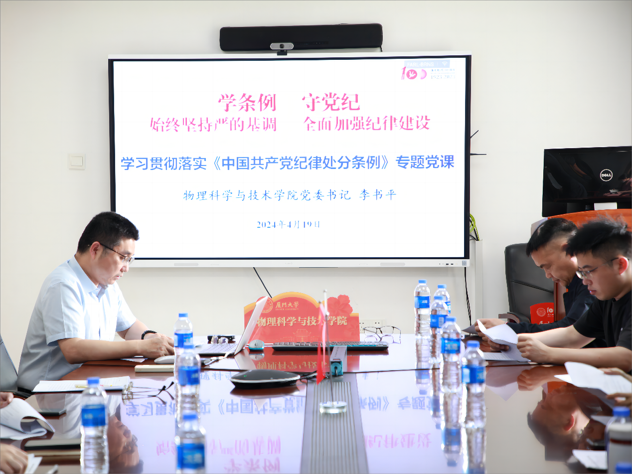 会议集中学习了 《厦门大学党纪学习教育实施方案》和任务推进表各项要求,会议审议通过《物理科学与技术学院党纪学习教育方案》。