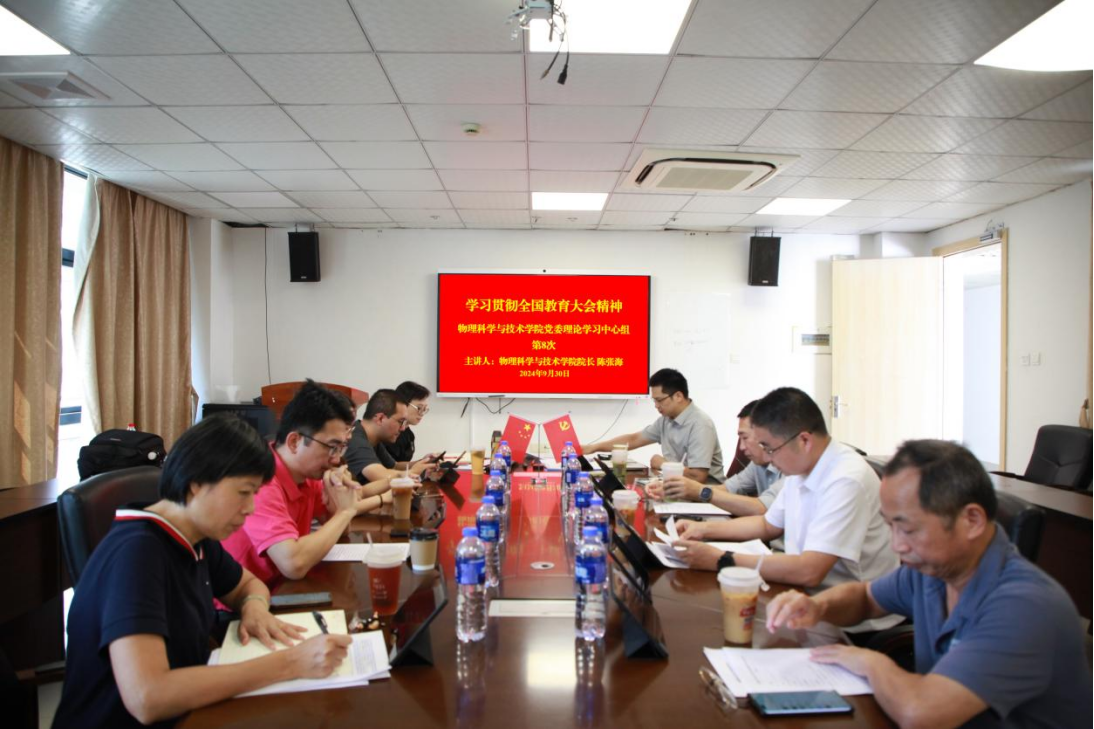 2024年9月30日,物理科学与技术学院党委在物理大楼438召开理论学习中心组学习,围绕“学习贯彻党的二十届三中全会精神、全国教育大会精神,深入推进学院综合改革、服务教育强国建设”主题开展集体学习研讨。学院党委书记李书平主持学习研讨,学校基层党建工作联络员黄鸿德莅会指导。