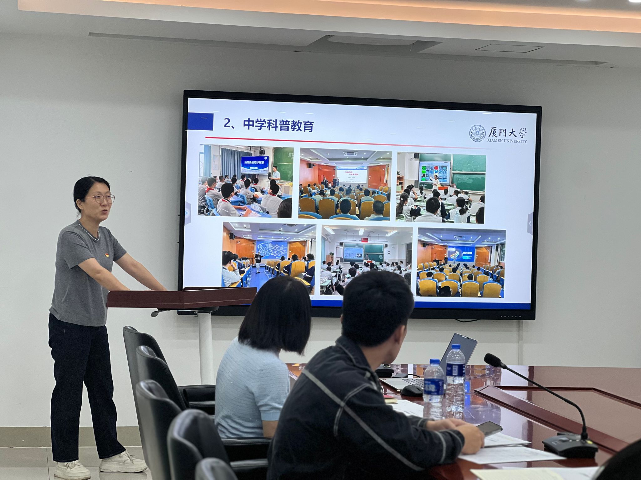 软物质物理师生联合党支部副支书杨云老师以“红烛领航,科普教育”为题,分享了支部立项背景及工作进展。支部成员深入大中小学开展多维度科普教育,贯彻教育强国理念。光学硕士生党支部书记宾维国介绍了支部通过联学共建、经验分享、前沿讲座等形式,党员积极参与实践和研学活动,实现理论与实践的融合。
