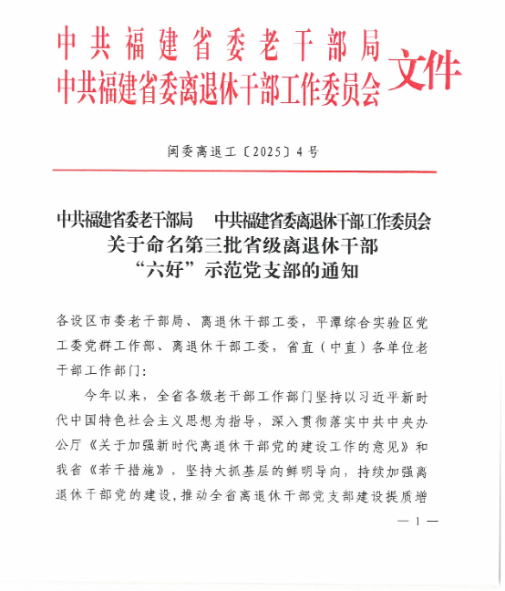 “离退休干部‘六好’示范党支部”评选是省委老干部局、省委离退休干部工作委员会为加强离退休干部党组织建设、激励离退休干部党员持续发挥先锋模范作用而开展的一项重要工作。评选严格对标“政治引领好、组织建设好、队伍管理好、学习活动好、作用发挥好、服务保障好”六大维度,旨在选树典型、示范引领,不断提升离退休干部党建工作质量。