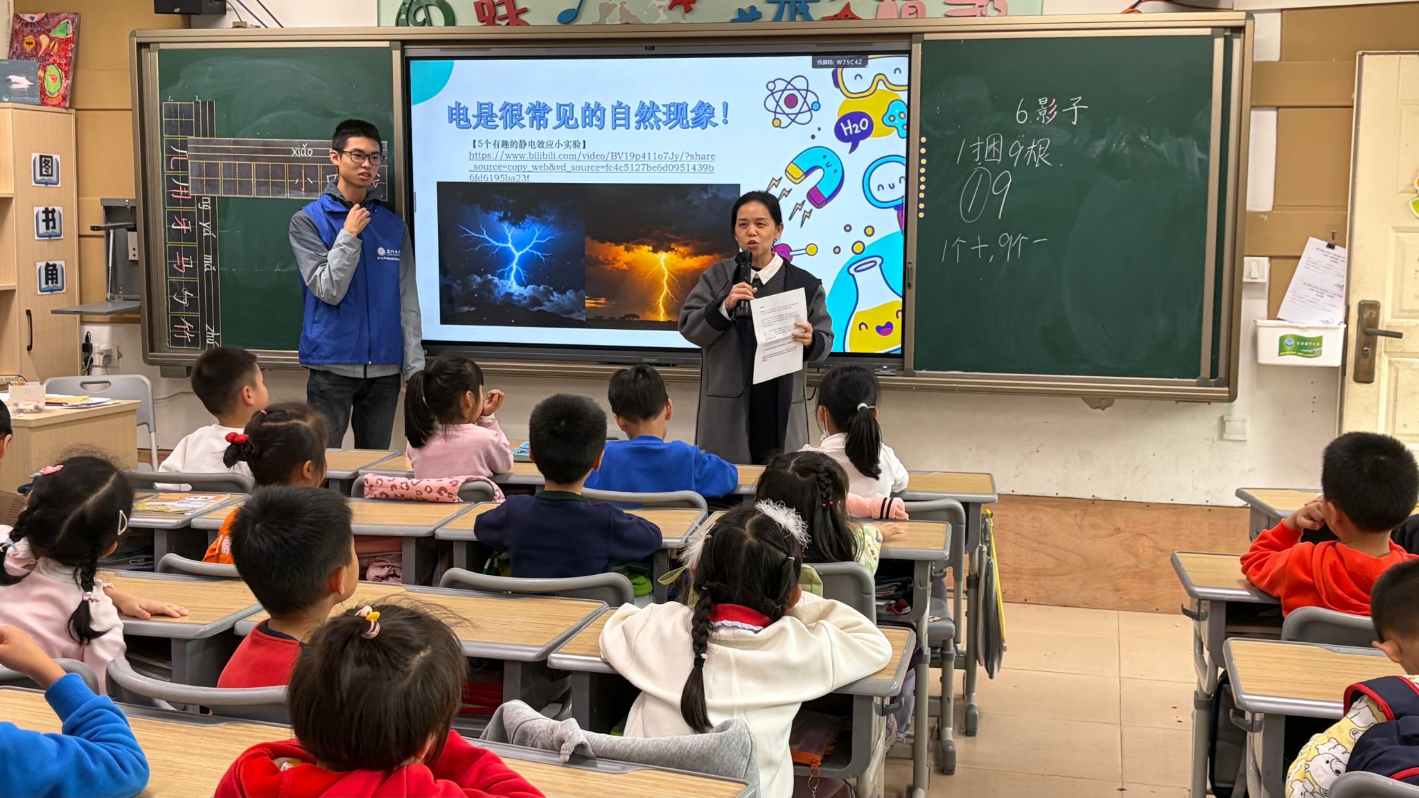 2025年12月3日,厦门大学物理科学与技术学院科普志愿者服务队在学院党务秘书游璐昀老师带领下,走进演武小学,开展“物理科普进校园”活动。团队以“摩擦起电”“纸杯投影”实验为载体,打造“科学游乐场”,让孩子们在动手实践中感悟物理魅力,将党的二十届四中全会“加强国家科普能力建设”要求转化为课堂实践,播撒科学探索的种子。