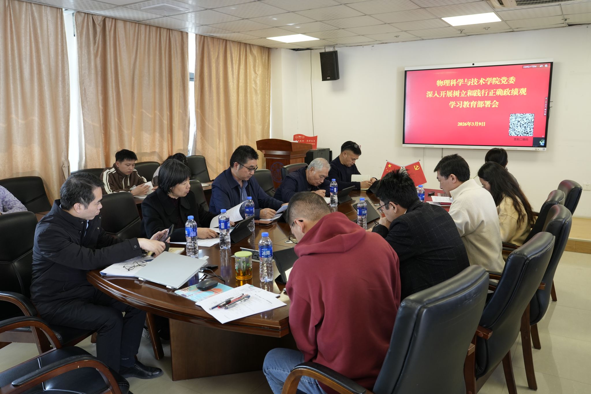 会议指出,本次学习教育于2026年春节后启动、7月底基本结束,以学院领导班子和领导干部特别是“一把手”为重点,扎实推进五项重点任务:深化学习研讨,筑牢思想根基。 结合物理学科特色开展专题学习,创新学习形式,举办“党建+科研”系列沙龙,参观相关大科学装置和重点实验室等,强化使命担当教育。开展问题查摆,找准症结根源。 对照政绩观偏差主要问题清单,深入查找存在的政绩观偏差,广泛听取师生意见。着力整改整治,确保进展成效。 坚持边查边改、立行立改,开展集中整治,制定整改计划,明确责任分工,定期跟踪问效。强化建章立制,推动常态长效。 深入梳理现行制度,完善议事决策、考核评价、激励约束等机制,健全常态化教育机制。坚持开门教育,凝聚师生力量。 持续深化“厦门大学公共自行车义务维修团队”等志愿服务品牌,联合校友与社会实践活动,将树立和践行正确政绩观融入产学研等实践活动,构建主题教育下的“大思政课”,推动解决师生急难愁盼问题,让广大师生可感可及。