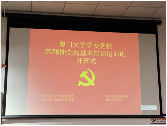 2020年10月17日上午,厦门大学党委党校第78期党的基本知识学习班(海韵四院)在海韵园物理大楼117报告厅正式开班。本期学习班由物理科学与技术学院、数学科学学院、信息科学与技术学院和电子科学与技术学院四个单位党委联合举办,由物理科学与技术学院党委承办,共有116名学员参与本次学习班。物理科学与技术学院党委副书记张秀丽、信息学院工会主席杨蔷老师出席本次开班式,参加开班式的还有各单位带队老师,数学科学学院团委书记于正伟,物理科学与技术学院辅导员胡艳婷,信息学院团委副书记蔡胜男、辅导员蔡婧蓉、电子科学与技术学院辅导员刘锦锗以及物理科学与技术学院党务秘书黄涵。