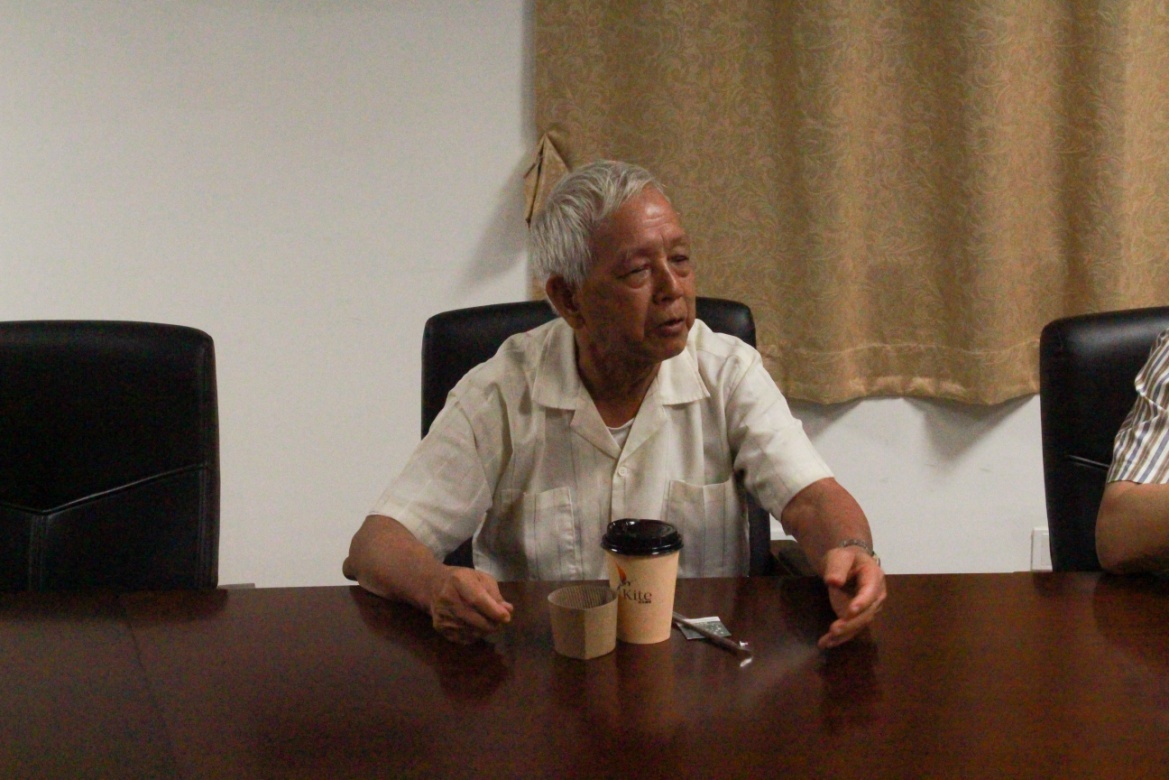 2017年7月5日下午在物理大楼307会议室,物理2014、2015级本科生党支部开展了一个特殊的交流活动。支部邀请到了物理系退休支部的老党员陈主荣、许乔蓁、刘焕堂、尤宣来、林白苇几位老同志,来给支部的一批新党员开展党课教育、进行思想交流。活动由支部书记邱丹文主持。