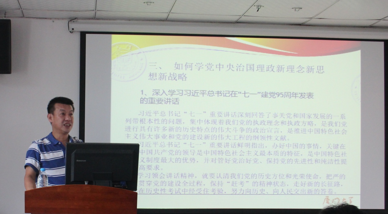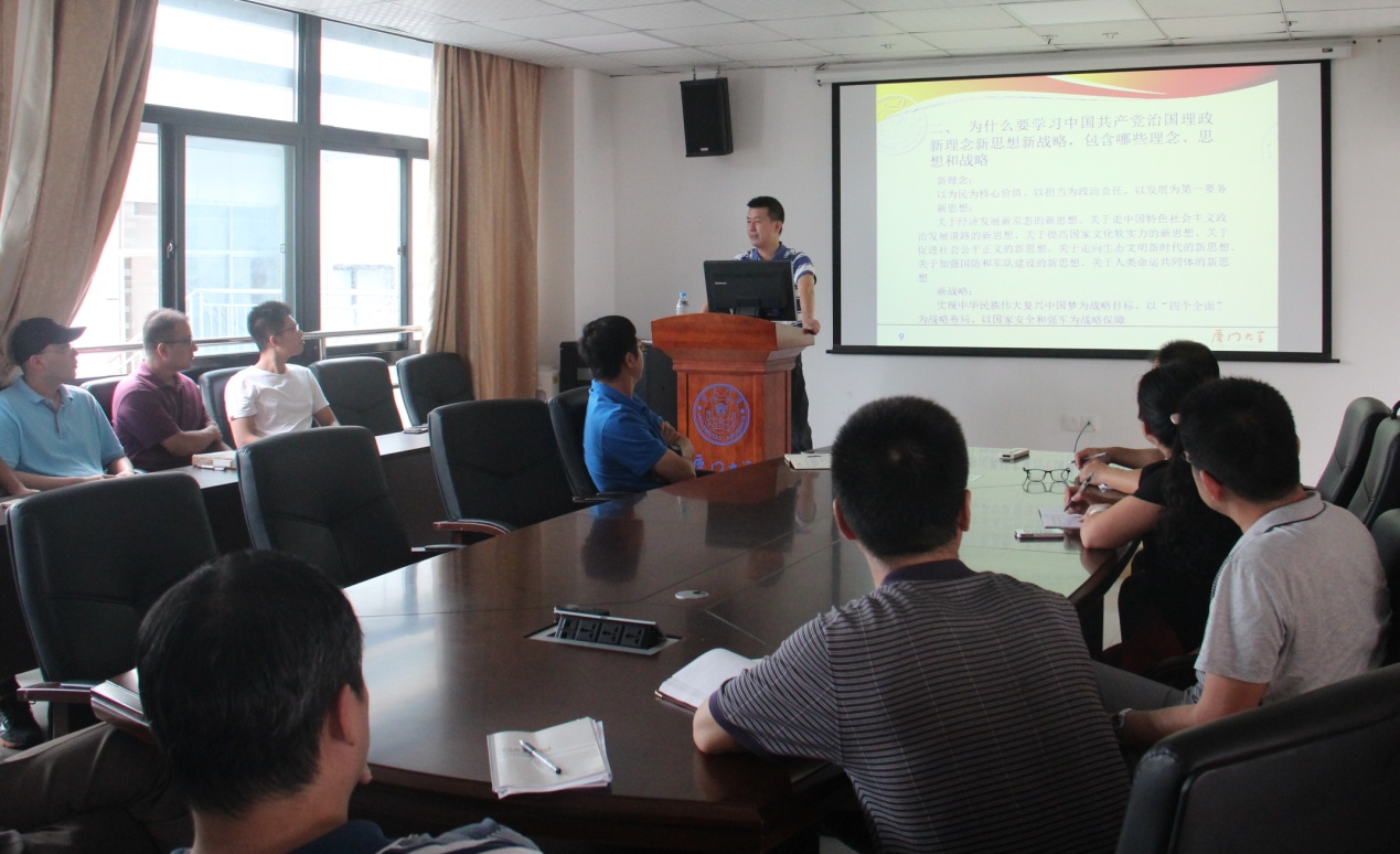 2016年10月21日下午3时,物理科学与技术学院于物理航空大楼438召开学院党委扩大会议。会上,院党委书记林奋强作《学习党中央治国理政新理念新思想新战略》专题党课。