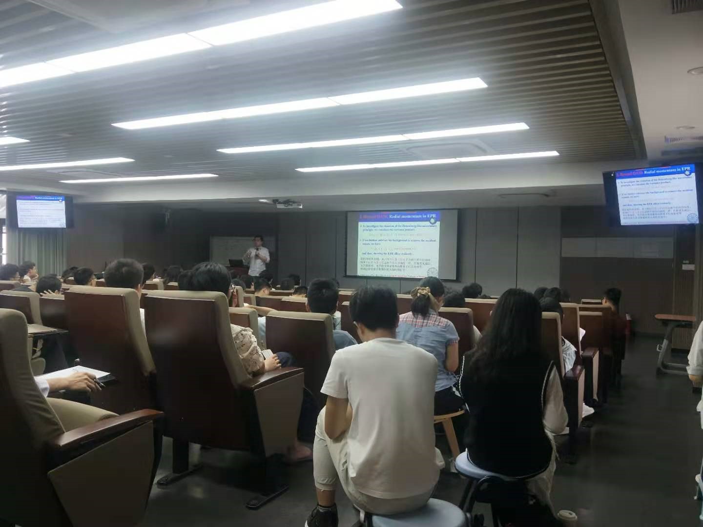 陈理想教授从从量子通信卫星“墨子号”谈起,介绍量子光学与量子信息领域的一些基本概念和核心技术;并着重介绍实验室近年来在光场调控及量子信息应用中的一些研究进展,包括了利用光场调控技术将人脸频谱信息加载到泵浦光,通过自发参量下转换过程实现了纠缠双光子波函数的有效调制,从而提出了一种新的基于量子关联成像的人脸识别技术。还有利用光场调控技术,首次实验揭示了自发参量下转换双光子的径位置和径动量所具有的新EPR量子关联。陈教授用诙谐的语言结合自己切身的经历向我们展示了量子光学的研究,同学们不时为陈教授敏锐的洞察力和独特的幽默感爆发出阵阵掌声。