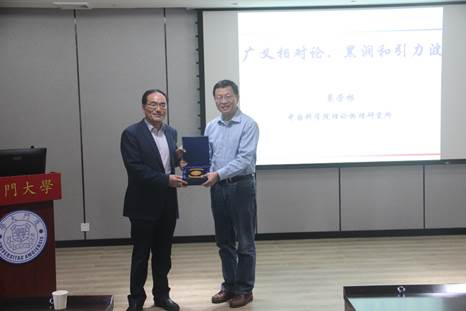 讲座由我院物理学系主任蔡伟伟教授主持,学院方陶陶院长为蔡荣根院士颁发了南强学术讲座纪念牌。