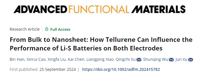 近日,厦门大学物理系的许清池副教授、徐俊教授团队和曹昕睿副教授、吴顺情教授团队合作,在高性能锂硫电池研究中取得新进展。相关研究成果以《From Bulk to Nanosheet: How Tellurene Can Influence the Performance of Li-S Batteries on Both Electrodes》为题发表在《Advanced Functional Materials》期刊上。