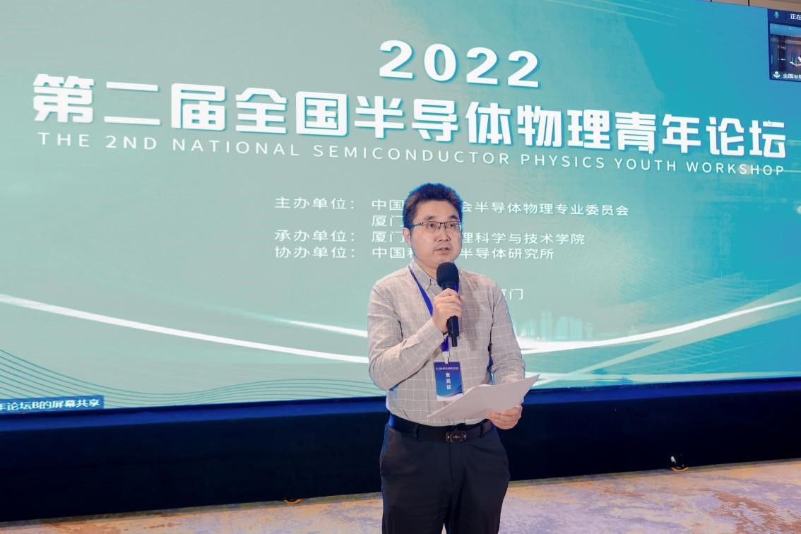 2022年11月5日至6日,第二届全国半导体物理青年论坛在厦门市香格里拉酒店召开,本次论坛由国家自然科学基金委员会资助,中国物理学会半导体物理专业委员会以及厦门大学主办,厦门大学物理科学与技术学院承办,中国科学院半导体研究所协办。由于疫情原因,本次论坛采取线上线下相结合的方式开展。国家自然科学基金委员会倪培根处长、刘强处长、姜向伟主任、论坛组委会成员以及厦门大学物理科学与技术学院李书平书记、陈张海院长、吴顺情副院长出席本次论坛。