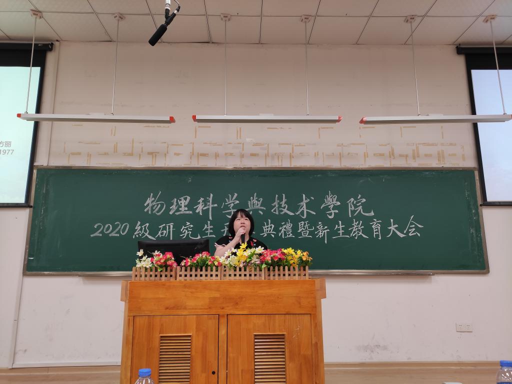 2020年9月12日上午九点,物理科学与技术学院2020级研究生新生开学典礼在物理大楼117会议室召开。学院党委副书记张秀丽老师、学院副院长顾为民老师,物理系主任吴顺情老师、教学秘书方丽老师、研究生辅导员邱丹文老师以及2020级全体硕士、博士新生参加了此次大会。