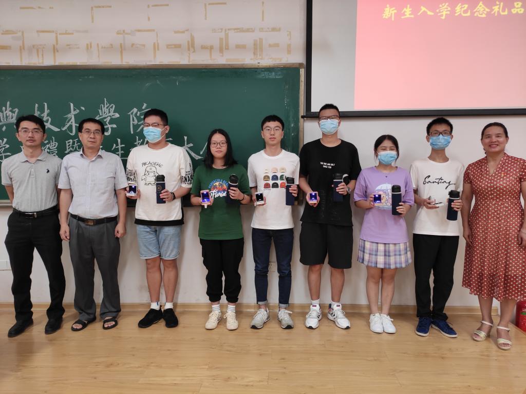 接下来是入学纪念礼品颁发仪式。今年,学院给每位新生都准备了一颗专属的莫桑钻钻戒和石墨烯保温杯。新生代表从学院领导的手里接过代表物理学院产学研一体化成果的两份礼物,感受到了来自学院的深厚情谊。学院也希望通过这样一种方式,让新生了解物理学院的研究成果,树立对物理的热爱和认可,让大家在未来的学习生涯中继续努力,不断超越自己。