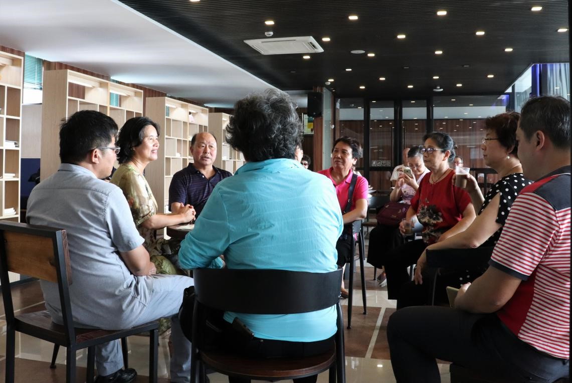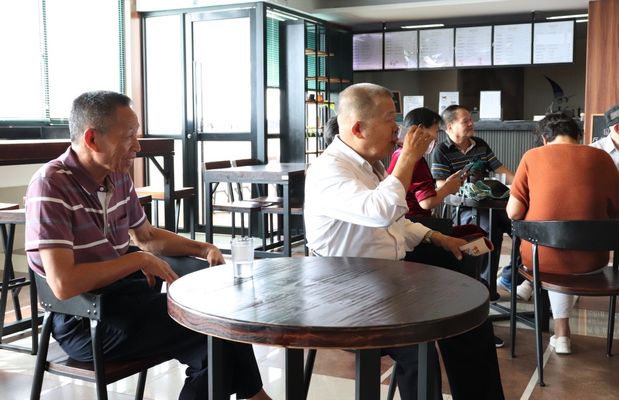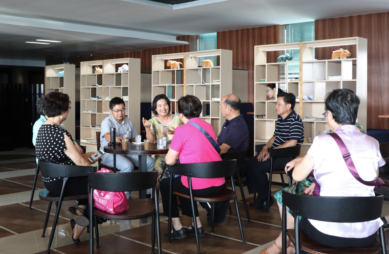10月8日下午,七五级半导体物理班系友回母校参观,学院党委副书记张秀丽、党委委员蔡加法及办公室主任刘俊希陪同在物理大楼数理咖啡厅聚会。
