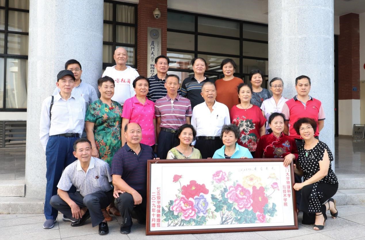 聚会结束后,系友赠予学院一幅精美画作,随后各系友与院领导在物理大楼门前合影留念。