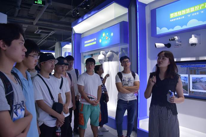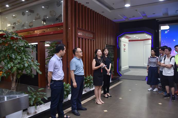 抵达后,罗普特集团人力资源中心招聘经理杨书华对学院师生一行的到来表示欢迎。随后由厦大校友李莹带领众人参观该公司的各项优秀成果,包括远距离智能广电系统、安保车辆综合应急指挥系统、交通事故远程定责定损系统等。