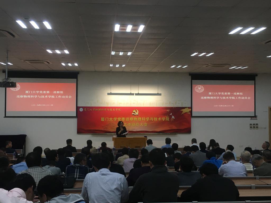 根据厦门大学党委关于开展第二轮巡察工作的相关部署,3月21日,校党委第一巡察组进驻物理科学与技术学院,开展为期一个月左右的巡察工作。21日下午3时,校党委第一巡察组巡察物理科学与技术学院党委工作动员大会在物理大楼117召开。校巡察领导小组成员、校纪委副书记、监察处处长陈雪玲,第一巡察组组长叶鹏飞、副组长宋毅、黄定基,巡察组成员黄艳萍、陈文、王海凤,联络员林志伟、董佳闻等出席了大会。大会由学院党委书记林奋强主持,物理科学与技术学院以及萨本栋微纳米科学技术研究院党政领导班子成员,全体教职工及离退休同志代表参加了动员大会。