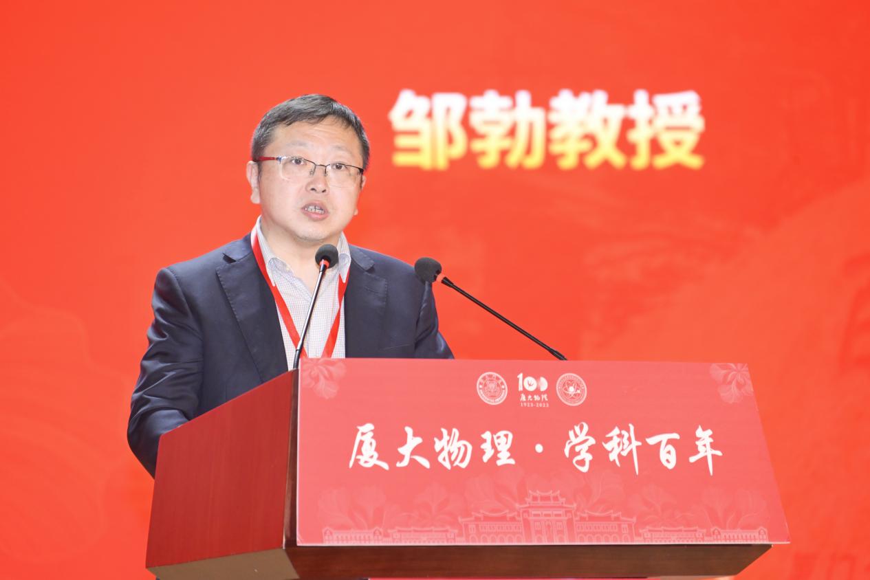 吉林大学物理学院院长邹勃教授在致辞中表示,厦大物理在百年的发展历程中,不断加强平台和团队建设、提升科研竞争力和人才培养水平,为我国物理学科发展事业做出了有力支撑。他希望继续深入合作,推动物理学科继续迈上新的高峰。