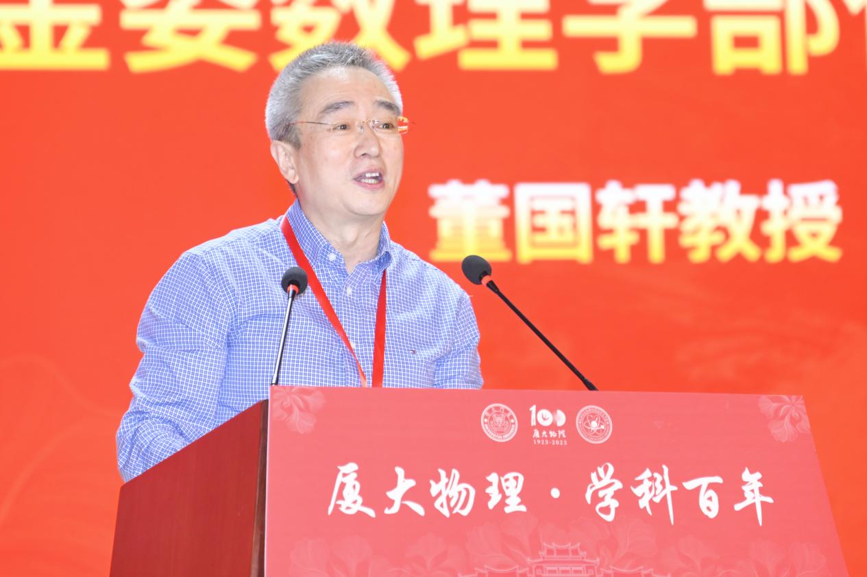 国家自然学基金委员会数理学部常务副主任董国轩教授代表基金委致辞,他表示厦大物理一直以来秉持交叉学科发展战略,开拓创新,对我国物理学科的发展起了重要作用。希望国家自然科学基金委员会及数理学部与厦大物理学科能够进一步合作从而推动物理学科的发展。