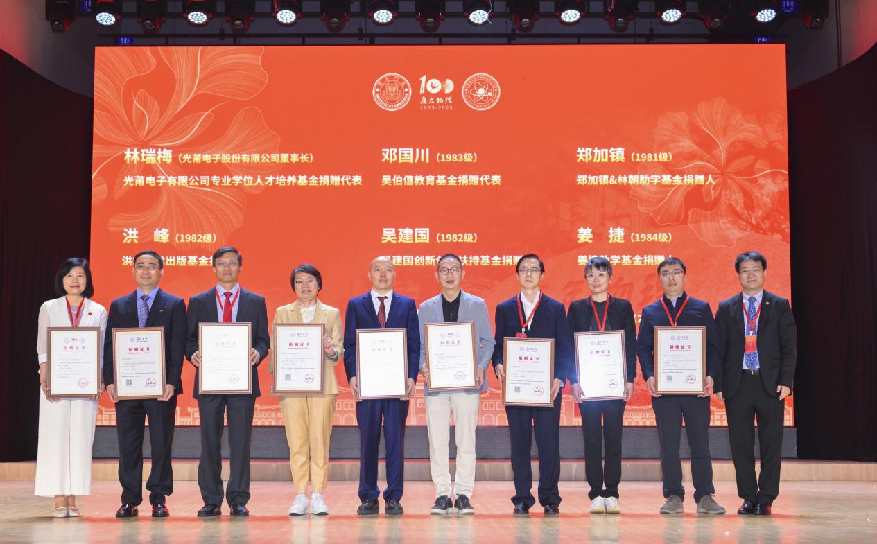 在嘉庚精神的感召下,遍布全球各行各业的厦大物理校友和社会各界朋友长期通过设立奖助学金、成立专项资金、成立校友合作企业等各种方式捐资兴学,会上还对支持母校建设做出贡献的校友进行了表彰和颁发证书。