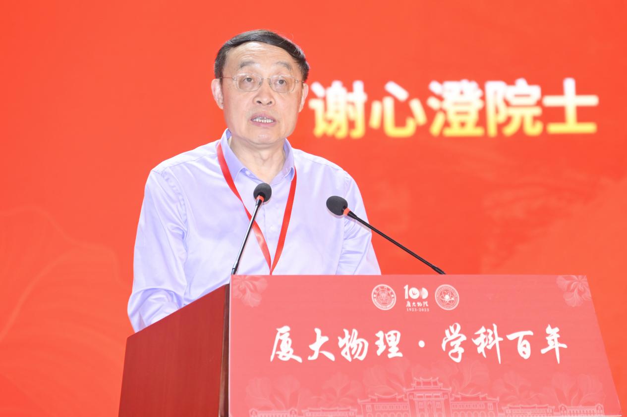 谢心澄院士代表北京大学发表了祝贺,他表示厦大物理坚持立德树人根本任务,始终铭记为党育人、为国育才的理念,为物理学科发展培养了许多人才,他希望国内众多高校共同努力推动物理学科学研究及教学发展,培育全面发展的人才。