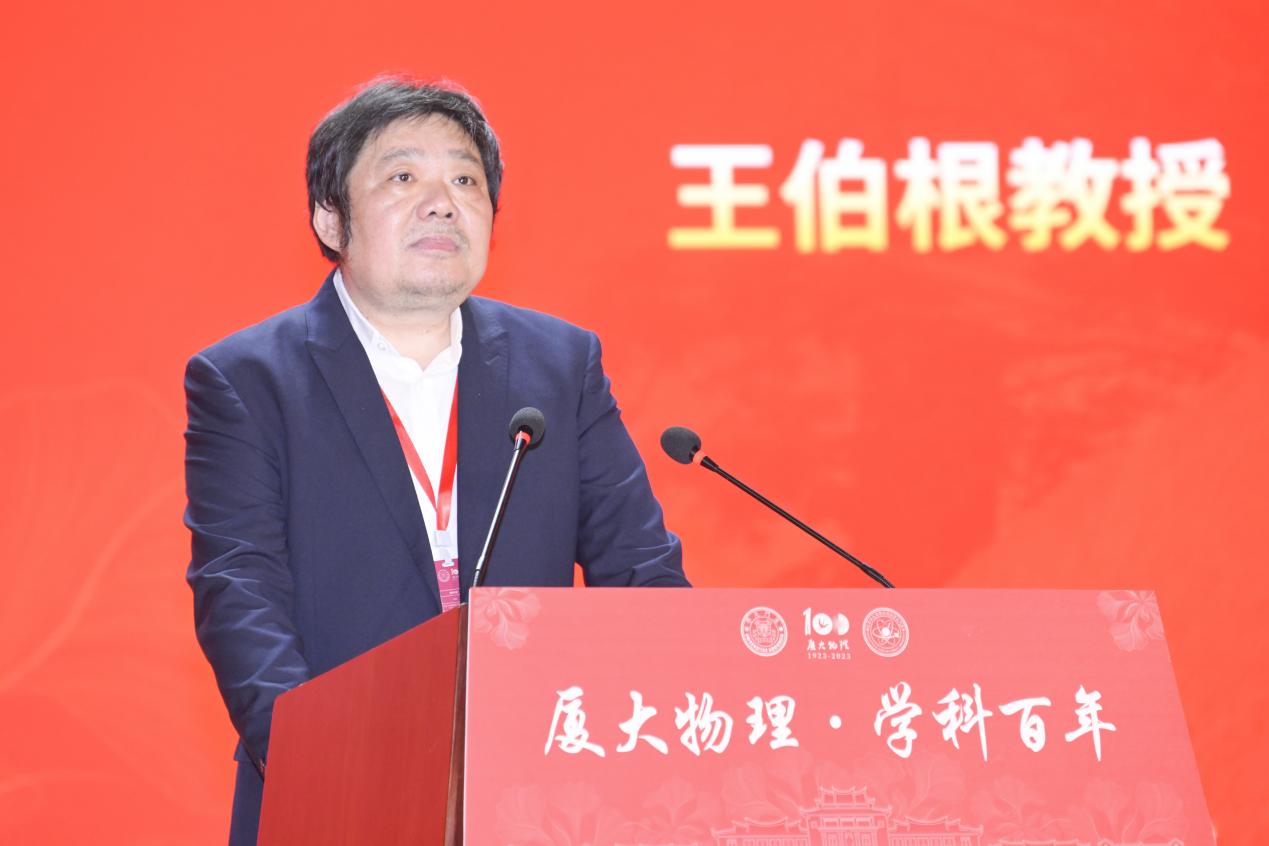 南京大学物理学院院长王伯根教授致辞,他认为厦大物理学科师资力量雄厚,长期承担国家重大科研任务,并取得高水平科研成果,培养了一大批创新人才,为我国物理学科发展做出了重大贡献。希望两院可以继续保持合作,以百年华诞为契机,两院同发展,共进步,为实现中华民族伟大复兴做出更大贡献。