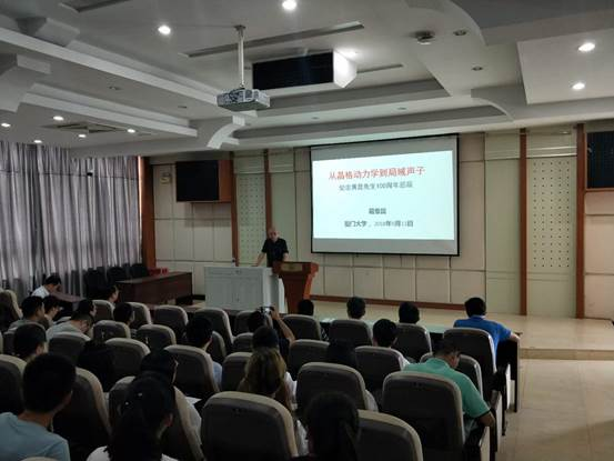 本次讲座中,葛教授首先指出伟大的中国物理学家黄昆先生在电子与声子的耦合(多声子跃迁)、光子与声子的耦合(极化激元)、超晶格的声子模式(黄-朱模型),以及杂质的 X射线衍射等重要的领域都做出了开创性的贡献。进而基于黄昆思想,介绍了其团队在GaAs中O原子以及GaN中C原子杂质产生的局域声子的最新研究成果。演讲结束后,葛教授耐心回答了师生们提出的一些问题,并进行了热烈的讨论和交流。