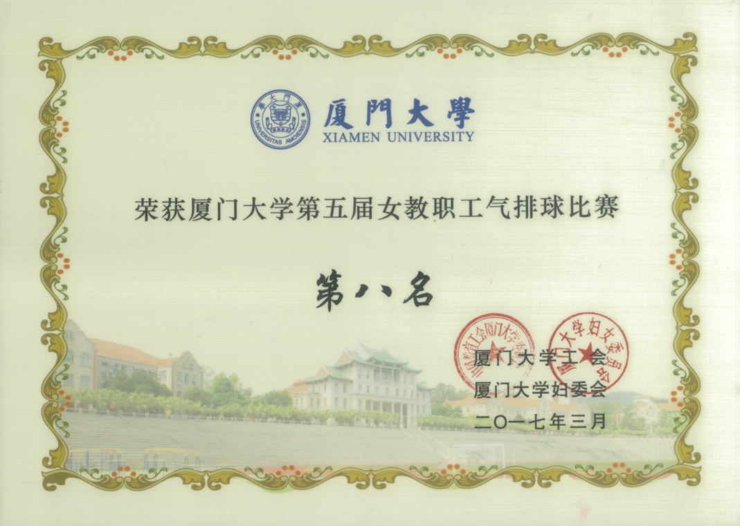 3月25、26日上午,由张秀丽副书记、郑瑛、张文生、林爱清、熊小平教师组成的物理科学与技术学院教师代表队参加了厦门大学举行的女教职工排球比赛,并取得了第八名的优异成绩。