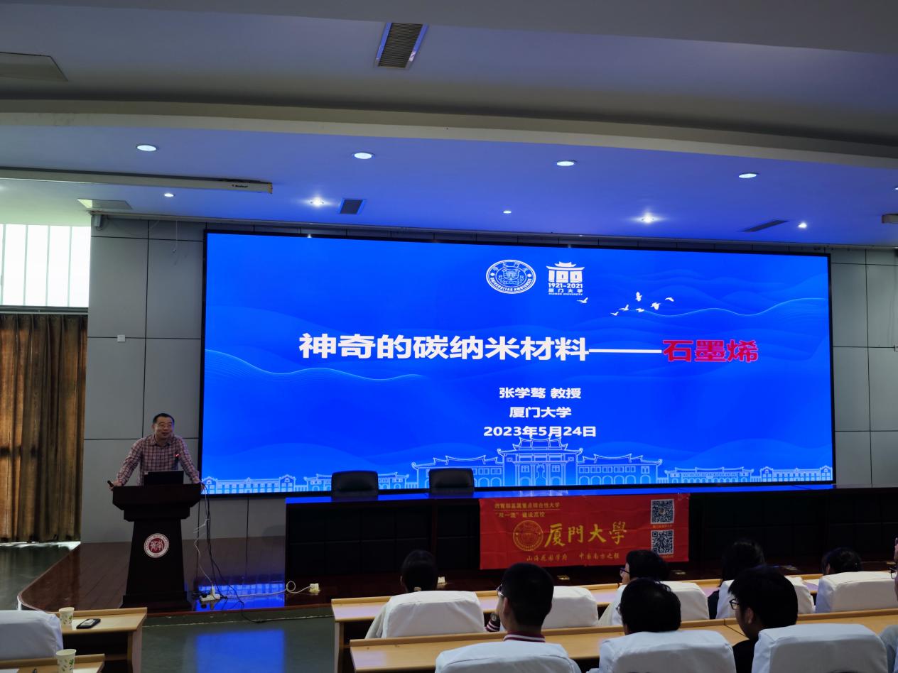 张学骜教授进行了主题为《神奇的碳纳米材料-石墨烯》的科普讲座,向同学们介绍了石墨烯的发现、表征、制备和性质等知识。同学们对这种前沿材料展现出了浓厚的兴趣。