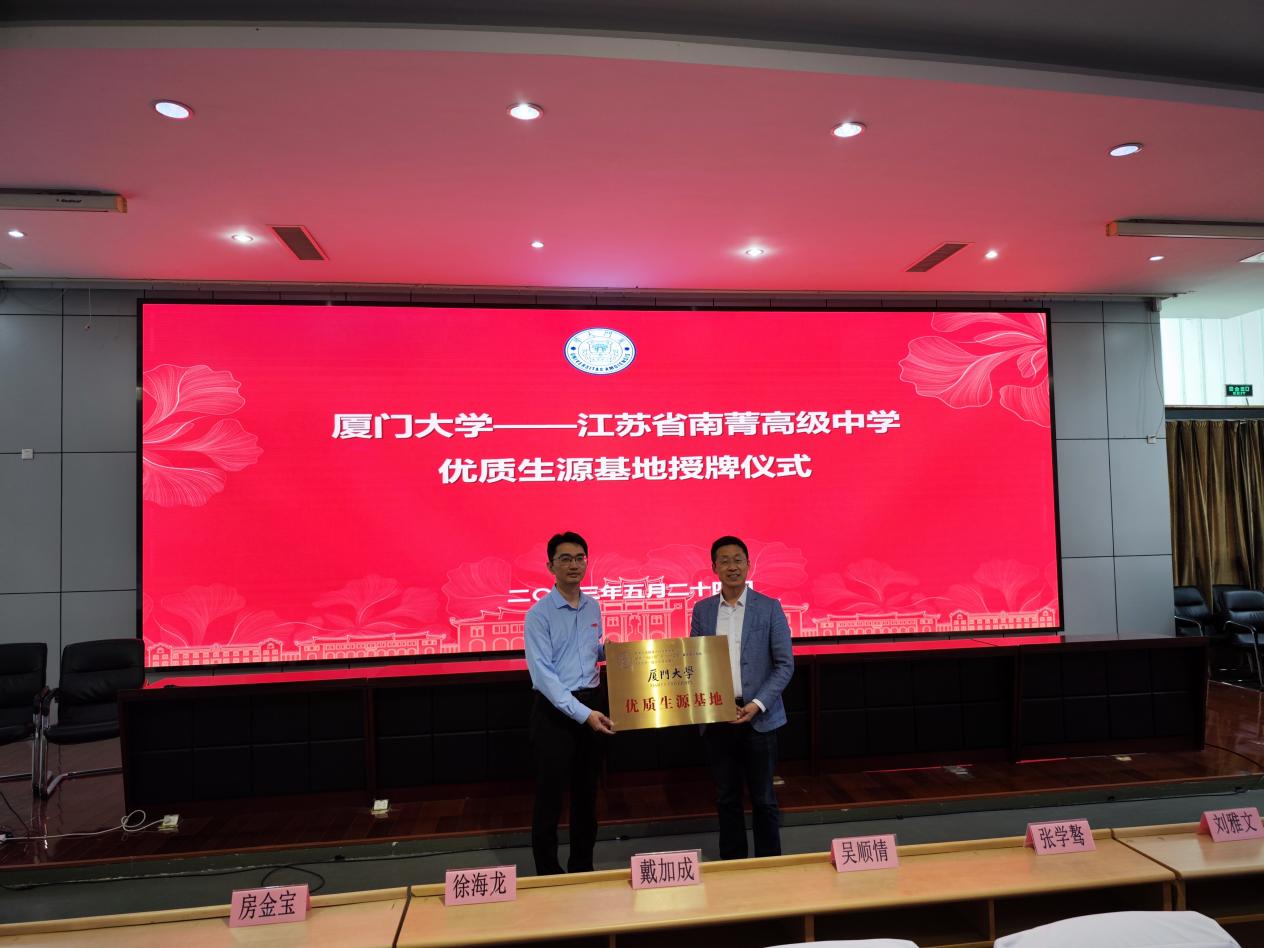 2023年5月24日,厦门大学江苏招生宣传组前往江苏省南菁高级中学开展了招生宣传活动。宣传小组由厦门大学物理科学与技术学院副院长吴顺情教授带队,厦门大学物理科学与技术学院物理系副主任张学骜教授、厦门大学物理科学与技术学院行政秘书刘雅文同行。