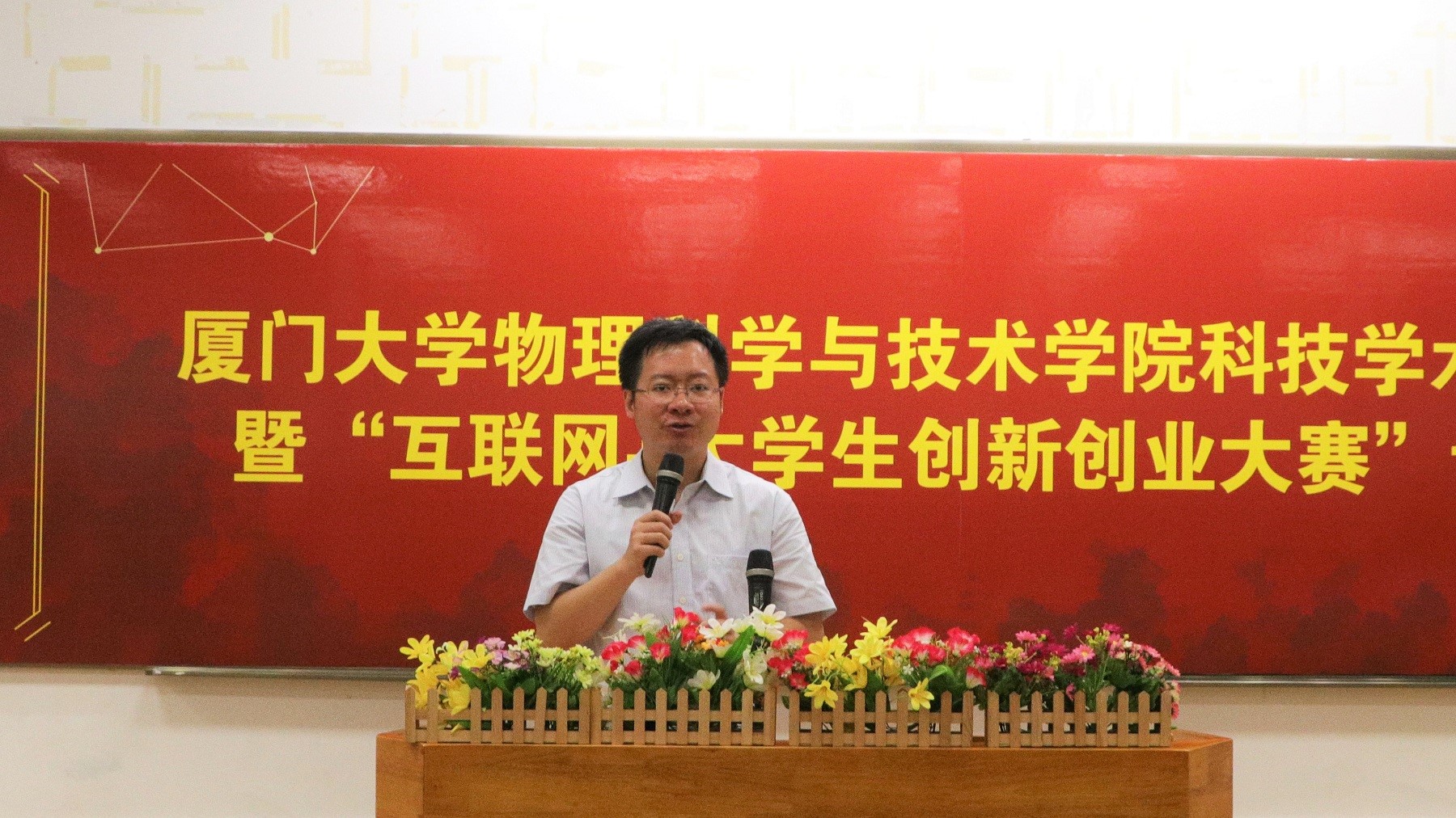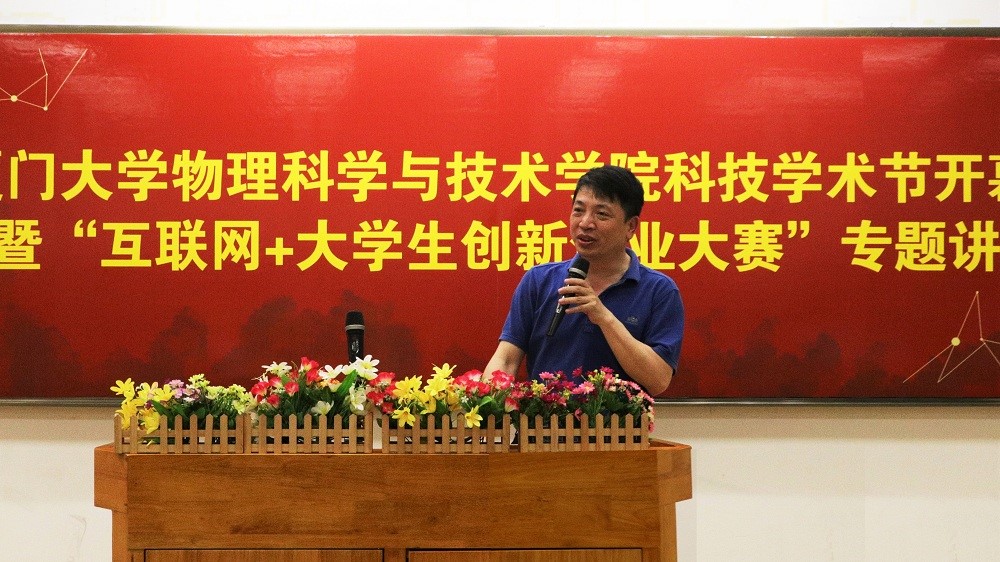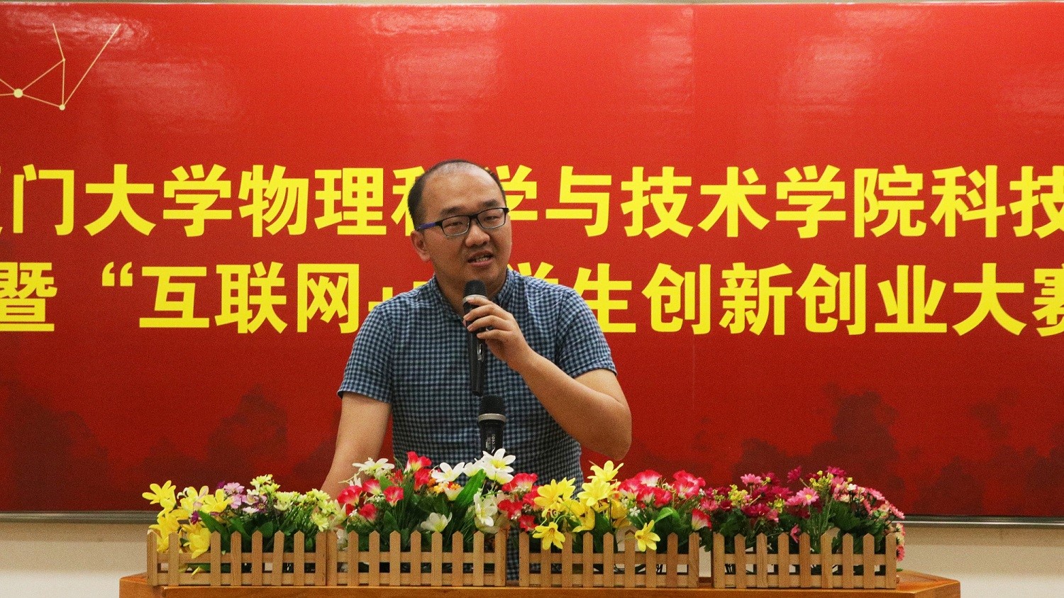 2017年3月29日晚,物理科学与技术学院“科技学术节”开幕式暨“互联网+”大学生创新创业大赛专题讲座在物理机电大楼117报告厅顺利举行,厦门大学团委办公室主任、科技学术部部长张晴老师,物理科学与技术学院副院长陈忠教授,党委副书记郑诚明老师,团委副书记陈洪老师,辅导员徐爱平老师,2016年创青春创业大赛全国金奖获得者、2013级本科生黄家铭同学,以及学院科创中心学生干部、2015级、2016级本科生和部分研究生参加了本次大会。大会由学院团委副书记陈洪主持。