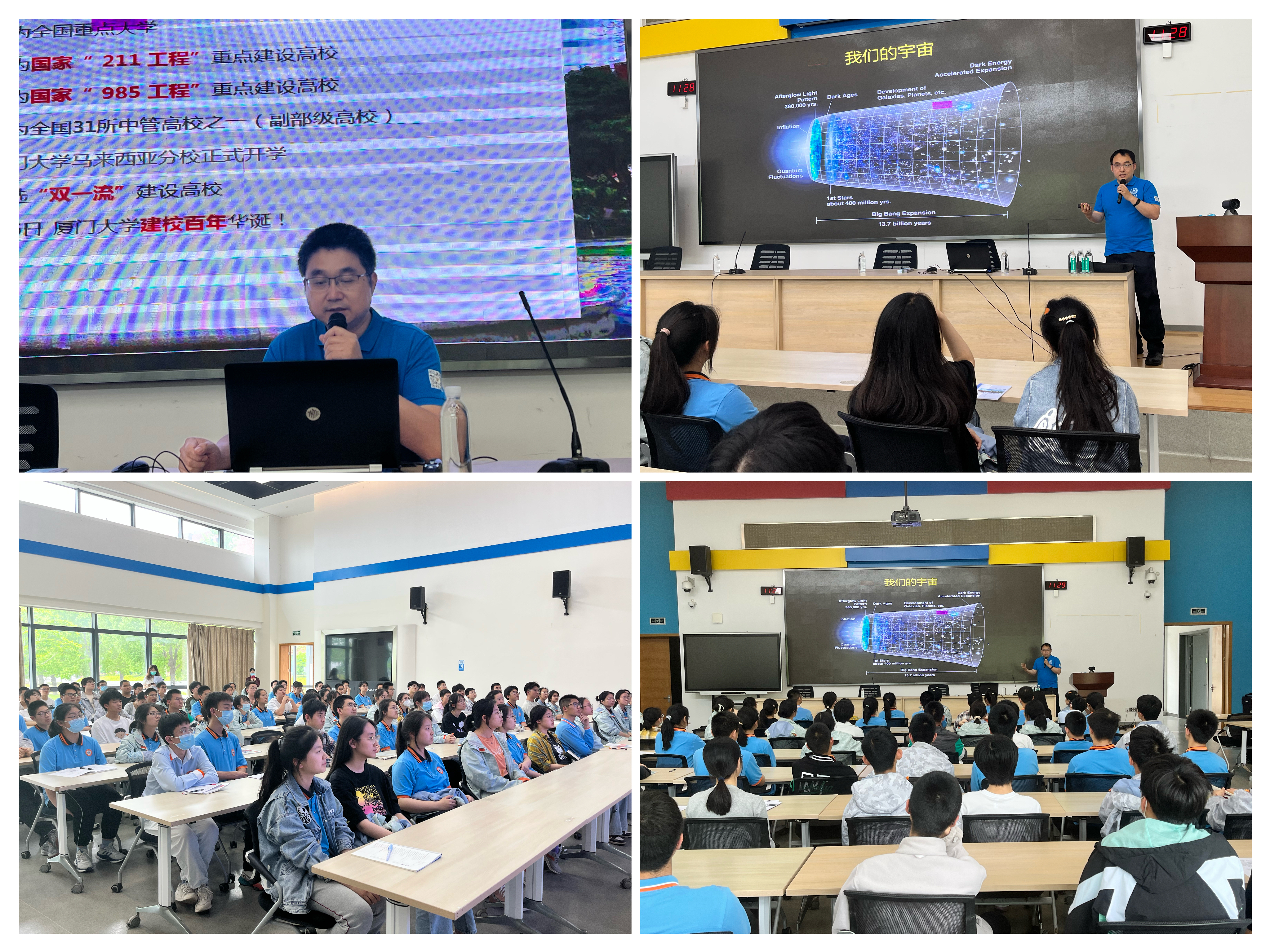 期间,李书平、武剑锋分别面向两所高中近400名师生开展招生宣讲和科普讲座。李书平详细介绍了厦门大学的悠久历史、学科优势、人文环境等,并围绕江苏考生普遍关注的招生政策、录取分数、报考注意事项等问题进行深入解读。武剑锋开展题为《黑洞:思想照进现实》的科普讲座,以黑洞为切入点,将中学生物理课堂常见的知识点灵活运用于天体物理学的讲解中,并深入浅出地介绍了黑洞领域研究的主要学说和发展历程,引来在场师生的热烈掌声。