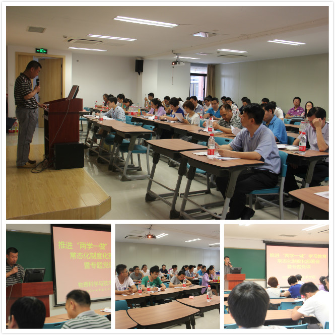 2017年5月15日下午16:30,物理科学与技术学院在物理航空大楼552顺利开展了推进“两学一做”学习教育常态化制度化的实施方案部署会暨专题党课。会议由院党委书记林奋强主持,学院党委委员,全院支部书记、支委参加。