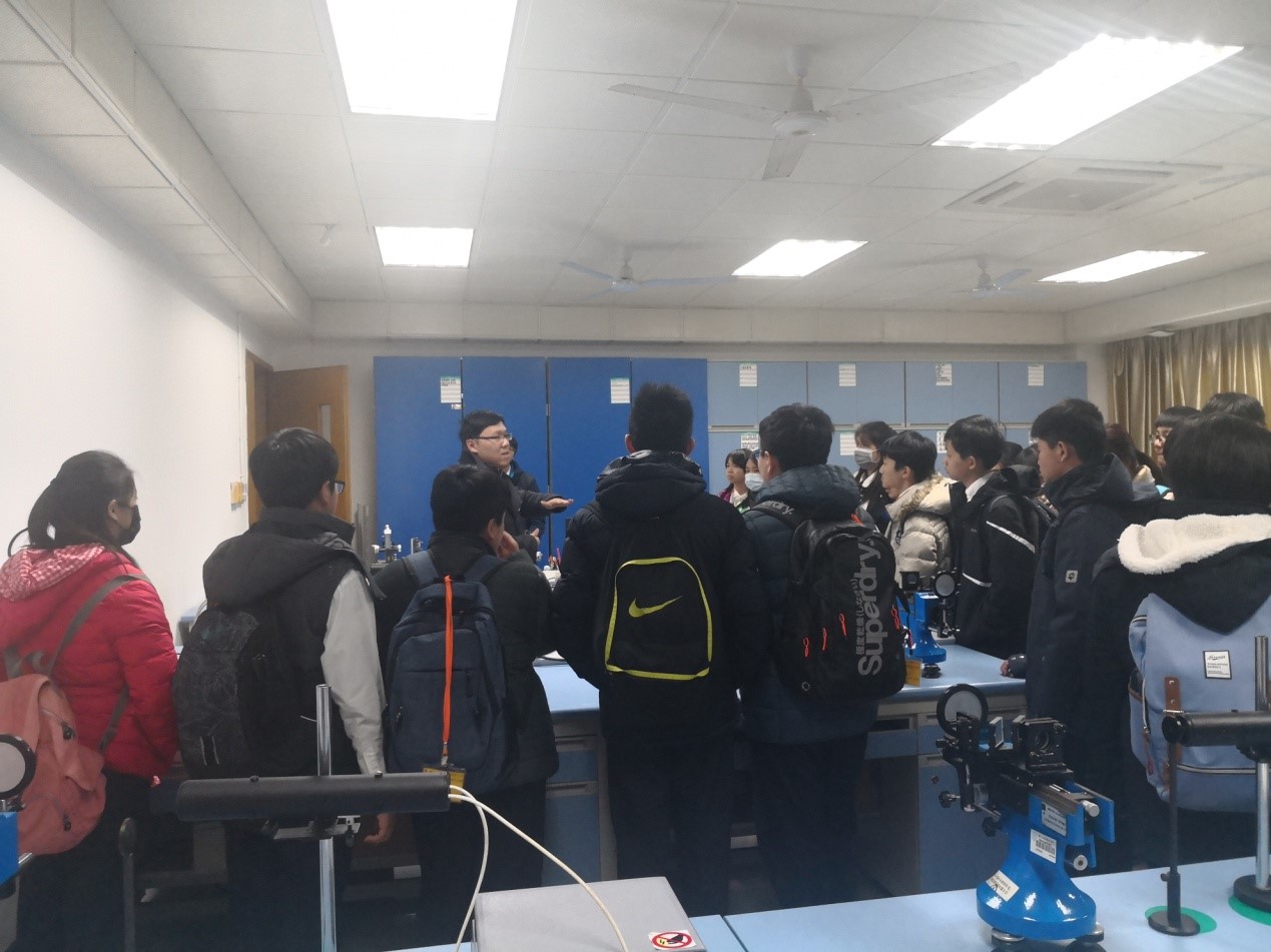 交流活动结束后,老师和同学们前往实验室参观。大家一同参观了基础物理实验室、软物质研究实验室、微波暗室,还了解了拉曼设备、X光衍射仪等设备。通过近距离接触实验室,来自台湾的中小学生们对物理学科有了一个更为直观的认识,也提前感受了大学生的学习生活。