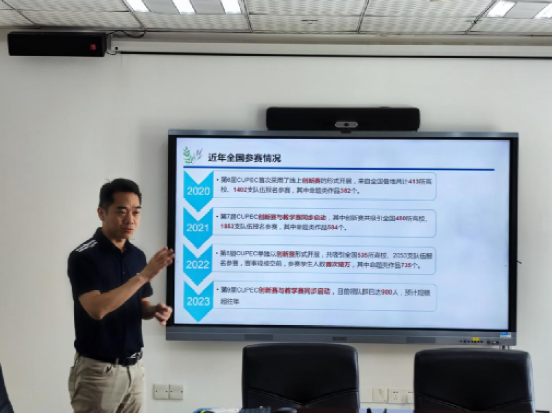 吴志明副主任介绍了厦门大学物理实验课程体系设置情况和CUPEC近年情况,物理实验课程体系设置包括实验室的发展历程、实验室设备、实验课程设置情况、学生培养等情况;CUPEC情况包括赛事简介、参赛情况、组织经验和作品成果等方面。除此之外,吴志明老师还提到了物理学院初期参与竞赛的历程,提升、发展并获得成果离不开许多人一直克服经费、人员、设备、场地和时间等重重困难、努力付出。