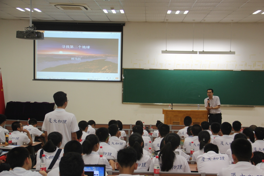 随着天文望远镜的发展,人类搜寻太阳系外行星的本领不断提升。从被戏谑成地球大表哥的“开普勒-452b”,到去年的比邻星行星发现,再到今年2月份NASA公布的7个类地行星发现,人类探索类地行星的脚步从没停止。为了给拓展营全体中学生普及天文科普知识,厦门大学物理科学与技术学院副院长,教育部天文学教学指导委员会委员,中国天文学会理事顾为民教授为中学生们带来了一场以“寻找第二个地球”的天文科普讲座。他用易懂的语言给大家介绍寻找系外行星的初衷、手段、历史和未来展望,让学生们对系外行星产生初步了解和强烈的兴趣。