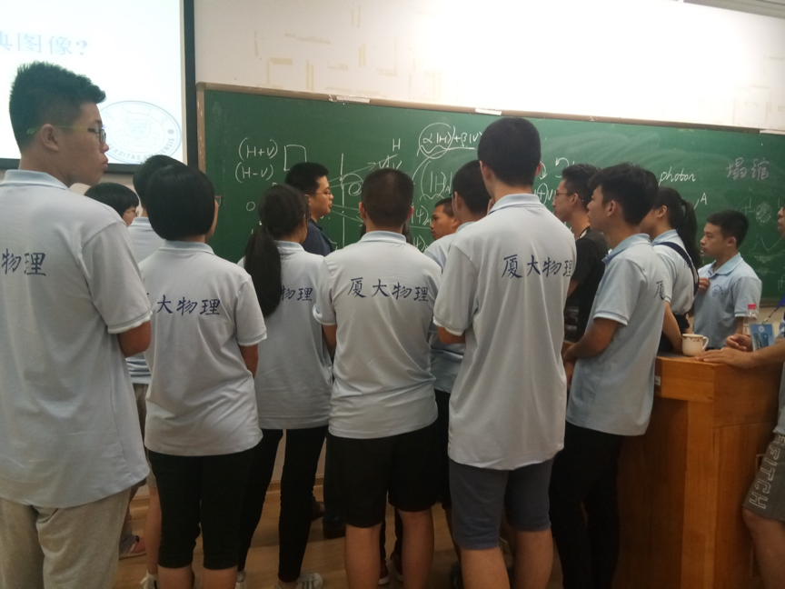 作为中国光学重要成果获奖者,厦门大学物理系量子光学实验室陈理想教授长期研究量子光学,有着丰富的理论实践成果和经验。本期拓展营陈教授为中学生带来了一场量子专题讲座。陈教授以我国发射的量子卫星“墨子号”为序引出量子卫星的主题,并介绍量子光学的一些基本原理。整日埋头于书本的中学生听到这些课本以外的神奇而高深的原理感到兴奋,课间纷纷跑上讲台询问问题。之后,陈教授还介绍了神奇的量子态隐形传输技术,以及未来几年诺贝尔奖热门。最后他着重介绍了厦门大学物理科学与技术学院的量子光学实验室优厚的设施,为有志于未来探索量子世界的中学生提供了一个实践的平台。